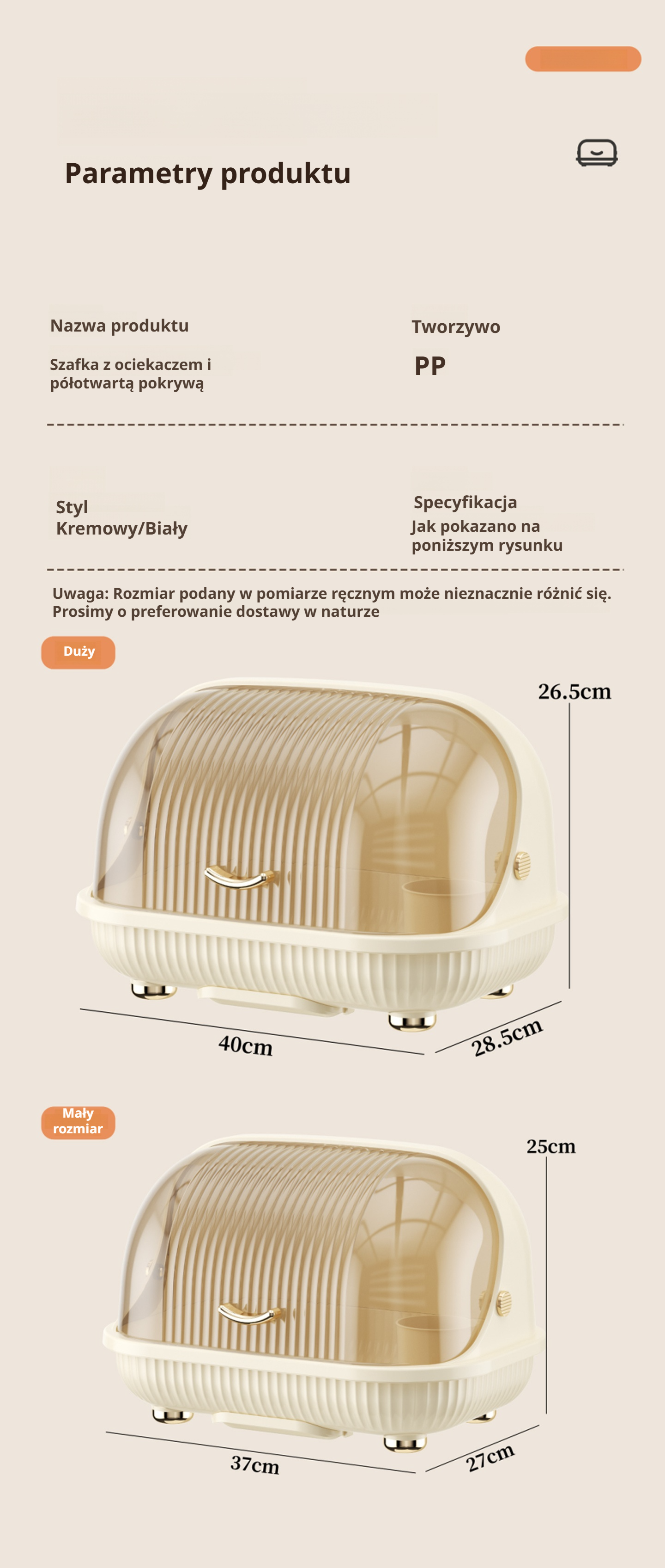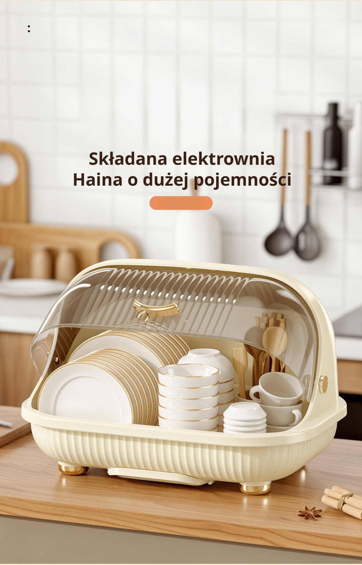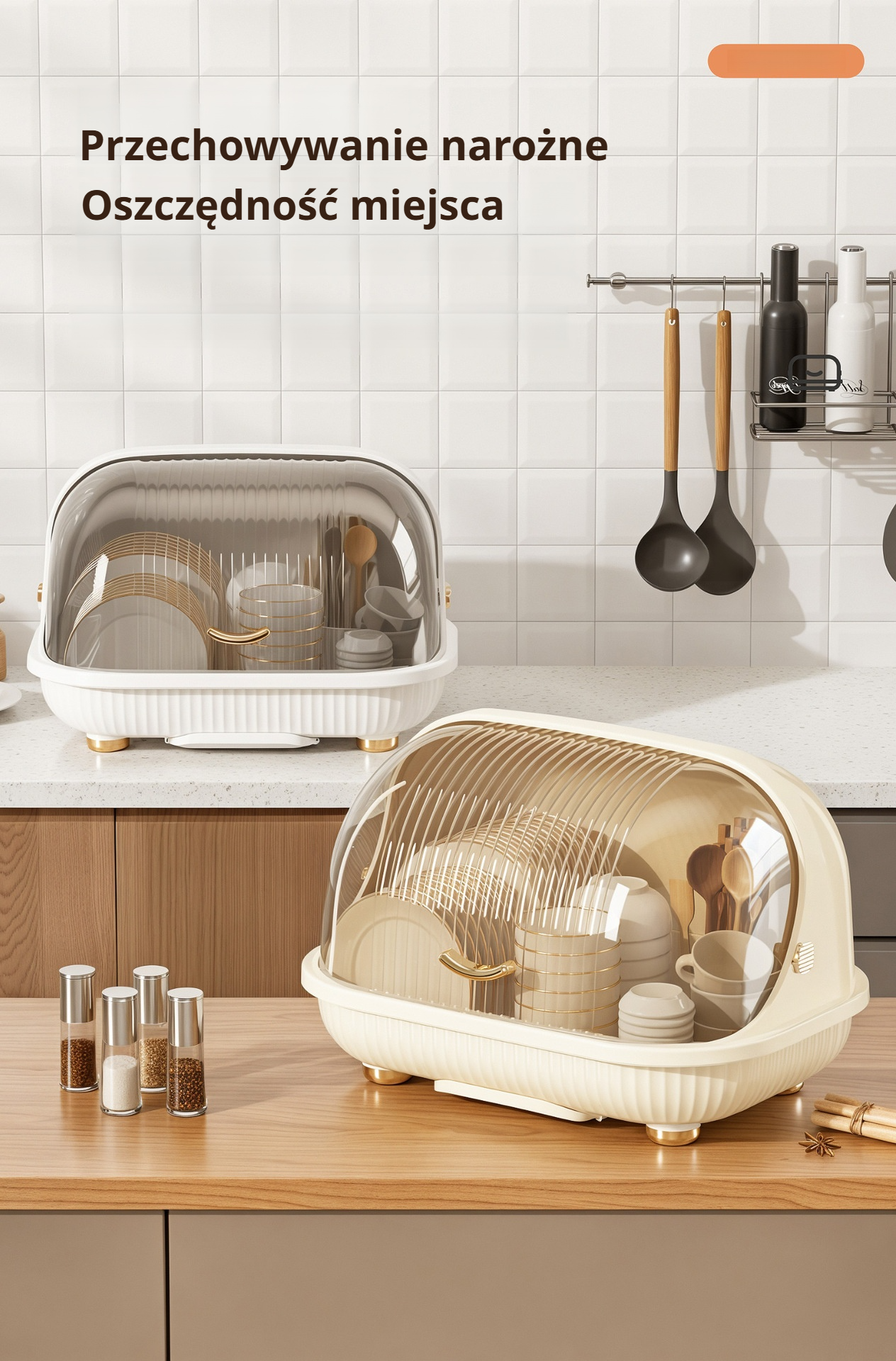 Duże pojemnik kuchenny z pokrywką i ociekaczem na naczynia