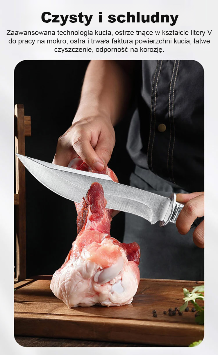 【30-Dniowa Gwarancja Zwrotu Pieniędzy】Twarda jak diament, jednym cięciem przecina nawet świńskie kopyto. Każdy nóż jest kuty siedemdziesiąt razy – nawet po dziesięciu tysiącach cięć kości i mięsa pozostaje niezwykle ostry. Brak konieczności konserwacji ani częstego ostrzenia, żywotność nawet do pięćdziesięciu lat. Wysoko oceniona i wielokrotnie polecana przez Autorytatywne Media Konsumenckie.